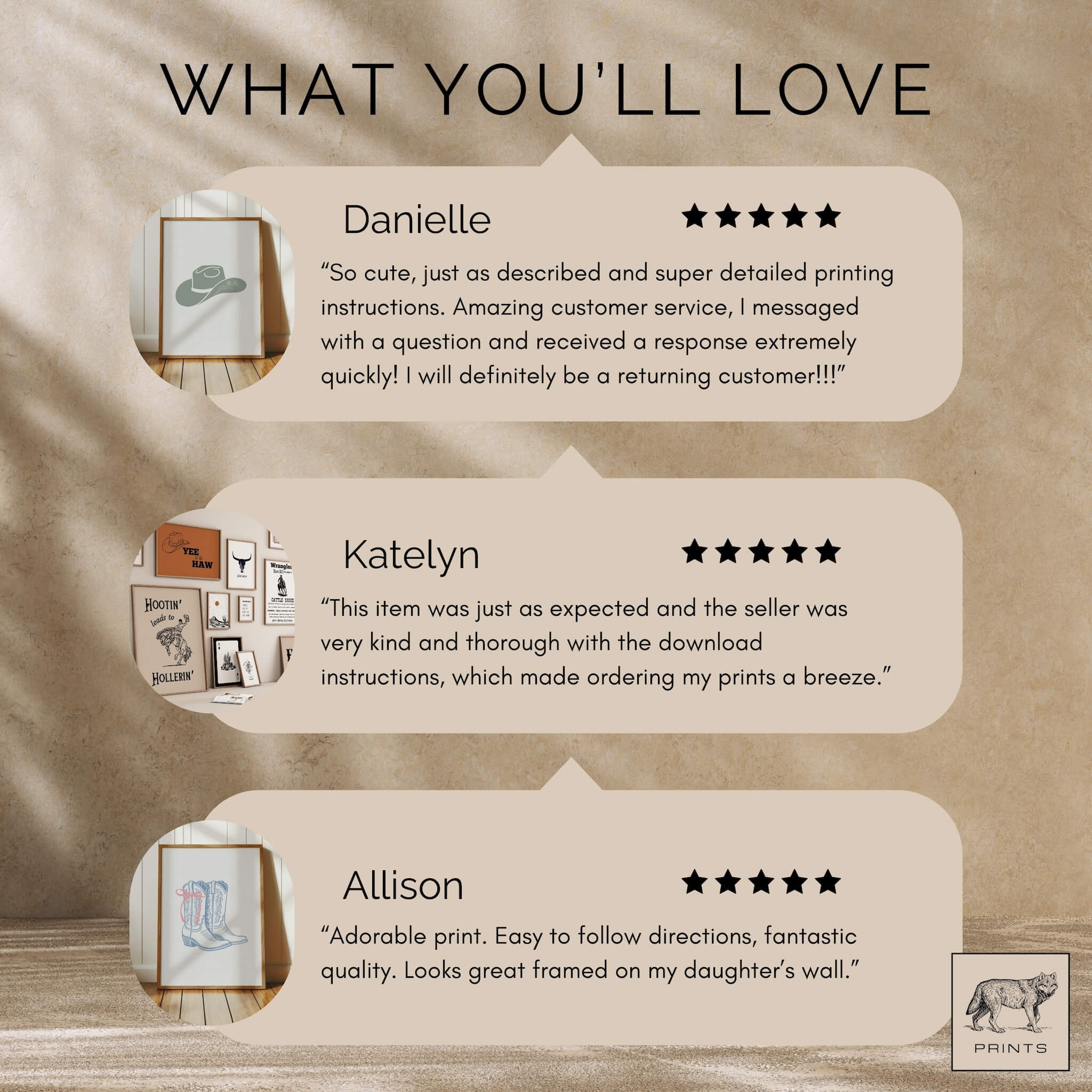 Bring unique personality to your space with this fun set of 5 prints! Whether you’re decorating your home or creating thoughtful, one-of-a-kind gifts, printable wall art offers a convenient and affordable way to showcase your unique style and elevate your space. Each design includes a detailed printing guide to help you achieve beautiful results. Simply print, frame, and enjoy!