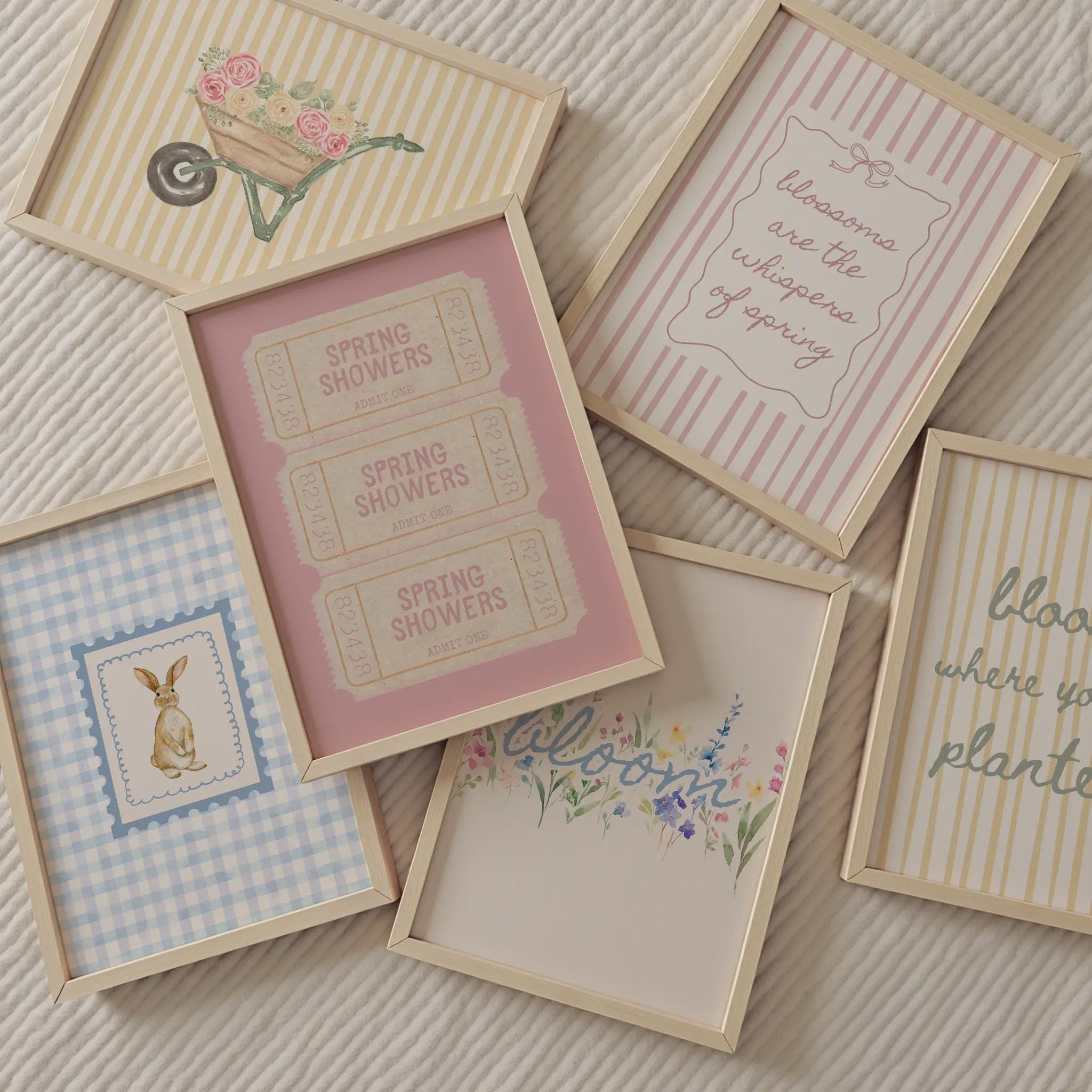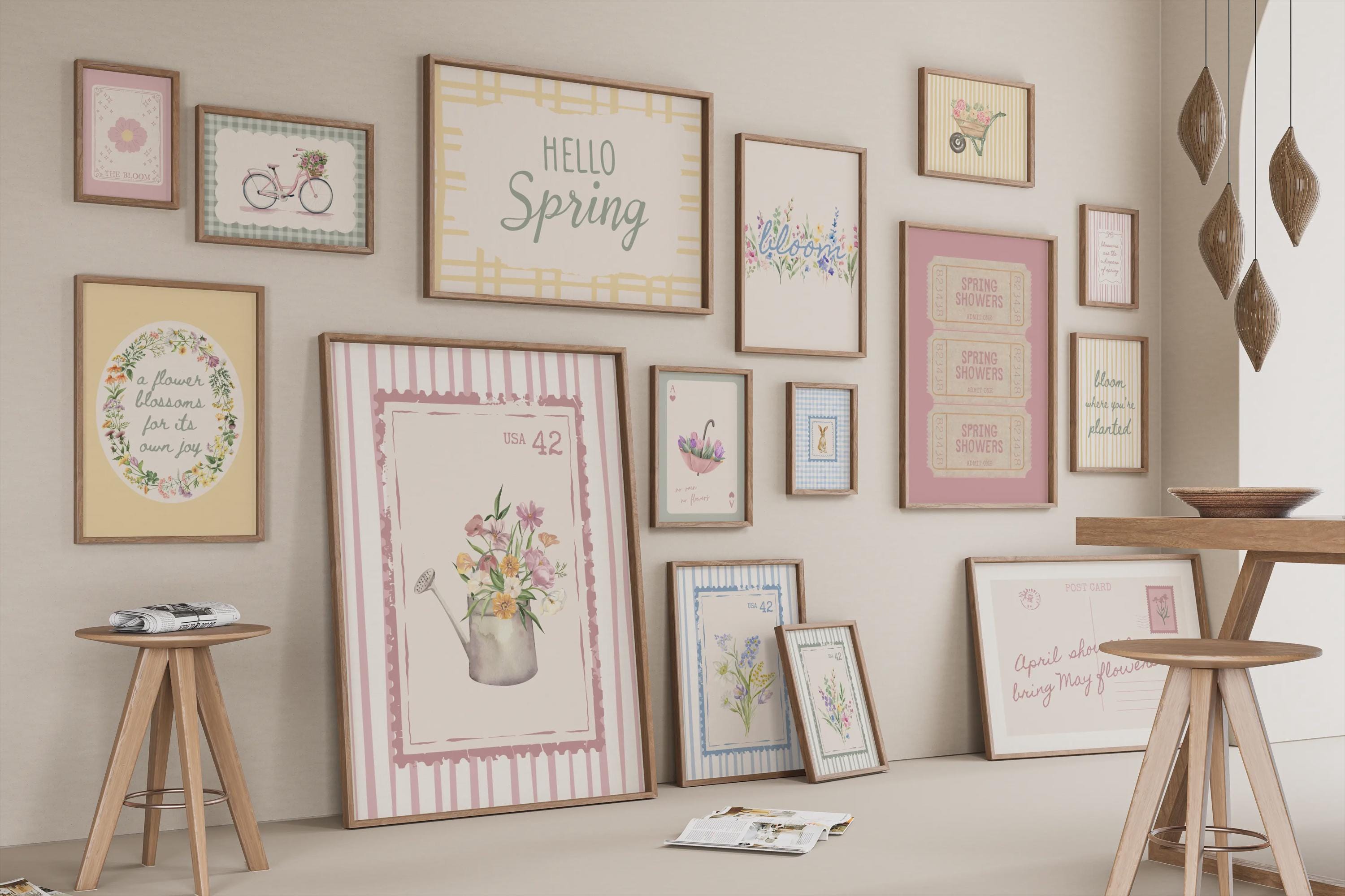 Bring unique personality to your space with this fun set of 15 Spring prints + 6 surprise bonus (21 total!) prints! A fun gallery of Spring decor in pastel colors featuring flowers, stripes, gingham, vintage stamps and more! Whether you’re decorating your home or creating thoughtful, one-of-a-kind gifts, printable wall art offers a convenient and affordable way to showcase your unique style and elevate your space. Each design includes a detailed printing guide to help you achieve beautiful results. Simply print, frame, and enjoy!